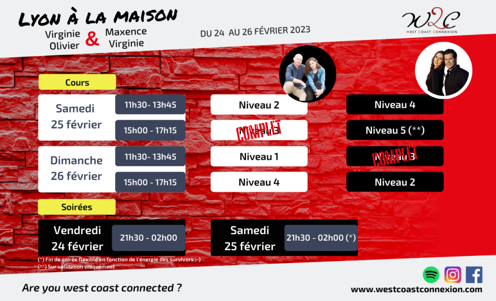 Pour les autres que nous ne sommes pas en mesure de conseiller, Virginie et Maxence feront une évaluation en début de cours pour vérifier l’homogénéité des participants. Dans le cas où vous ne pourriez pas rester sur ce niveau 5, vous aurez alors deux options possibles: